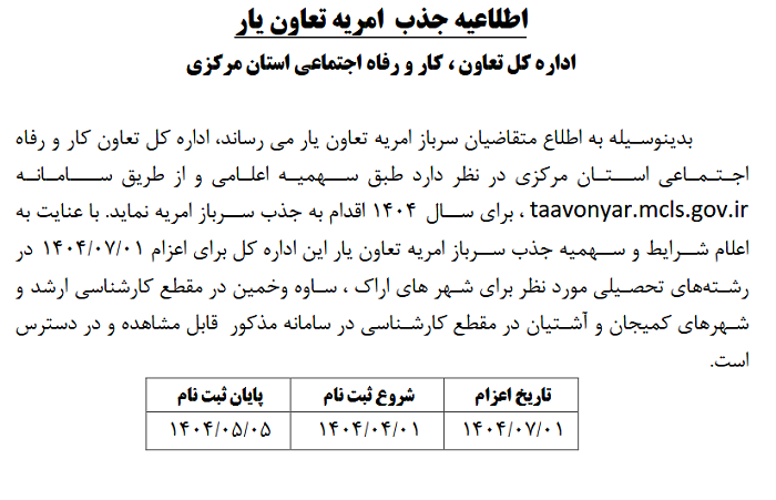 اطلاعیه جذب امریه تعاون یار ۱۱ تیر ۱۴۰۴ | ۱۲:۰۴ کد : ۵۲۷۴۸ اطلاعیه ارسال به دیگران نام شما ایمیل شما ایمیل دریافتکننده ارسال انصراف تعداد بازدید:۱۳۲۱ اطلاعیه جذب امریه تعاون یار