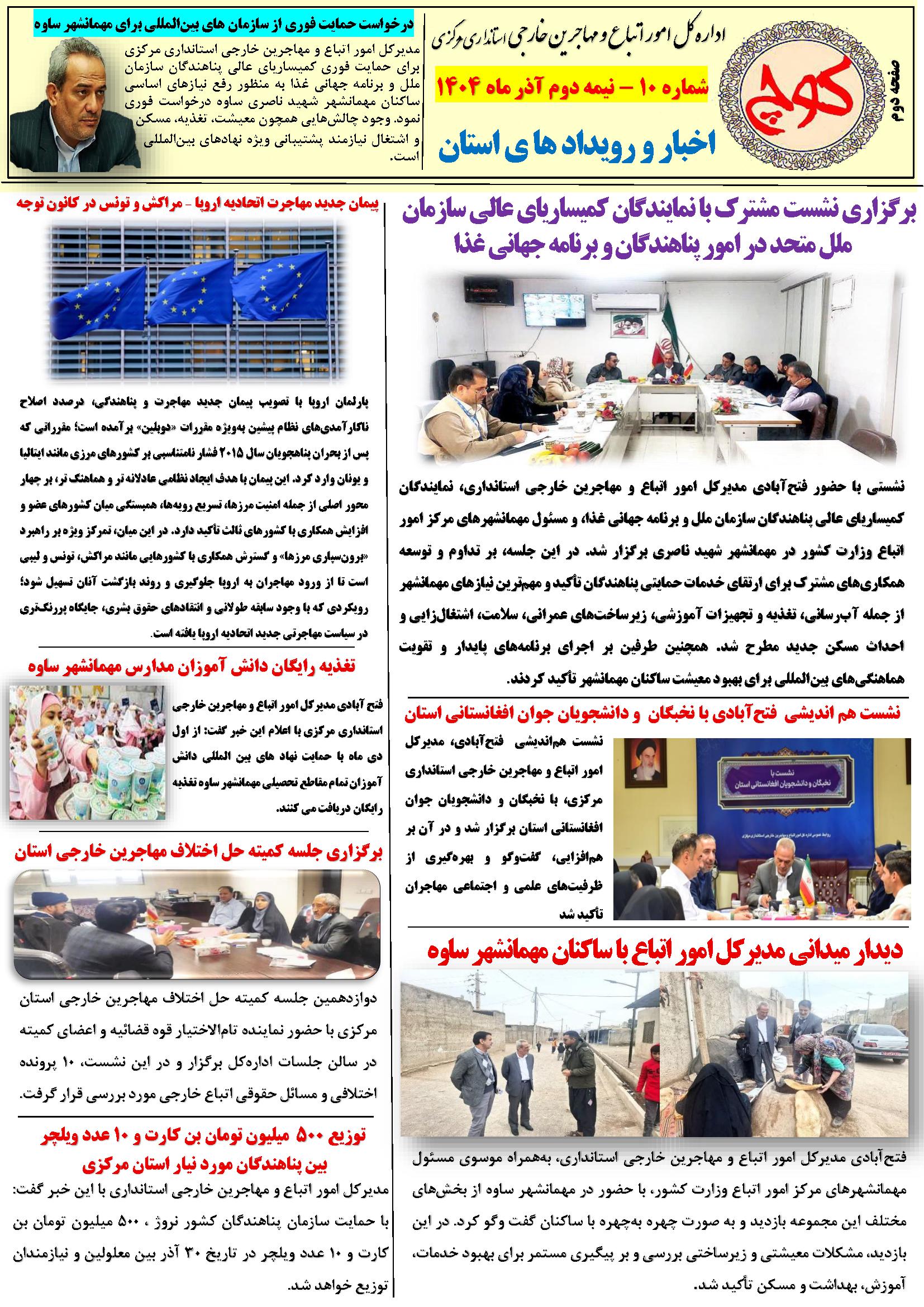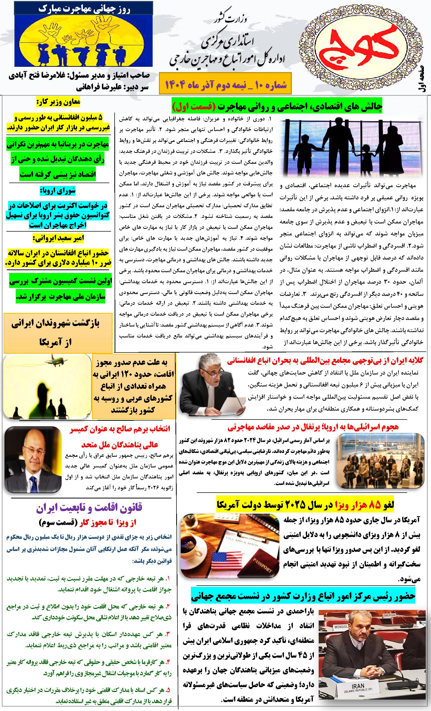 دهمین شماره نشریه کوچ ۰۳ دی ۱۴۰۴ | ۰۹:۲۱ کد : ۵۷۵۲۰ اطلاعیه ارسال به دیگران نام شما ایمیل شما ایمیل دریافتکننده ارسال انصراف تعداد بازدید:۴۳ دهممین شماره نشریه کوچ، توسط دفتر امور اتباع و مهاجرین خارجی استان مرکزی منتشر گردید.